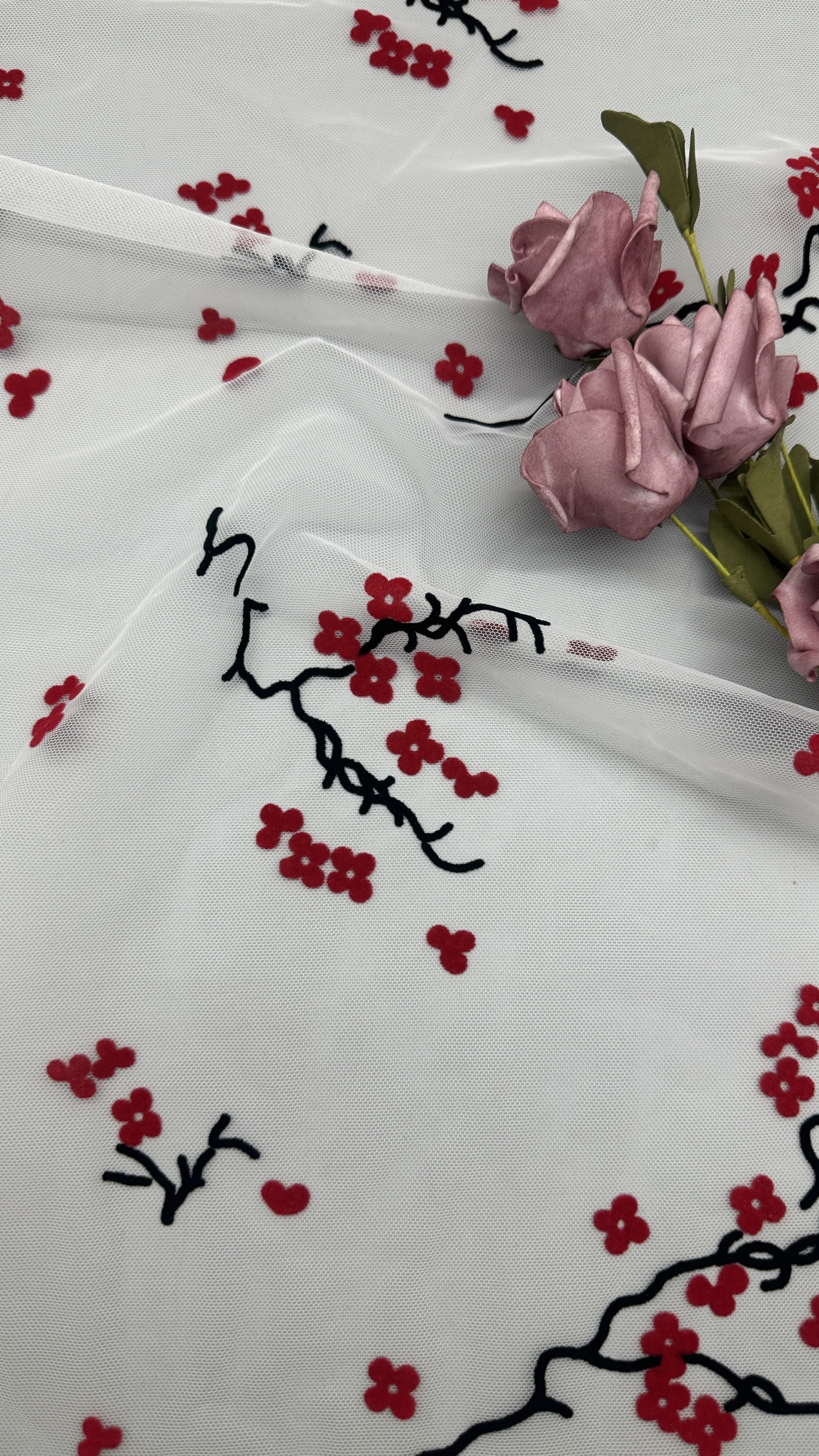 | Resaltar: | flocked mesh lace fabric,traditional snowflowers fabric,elegant customized lace fabric |