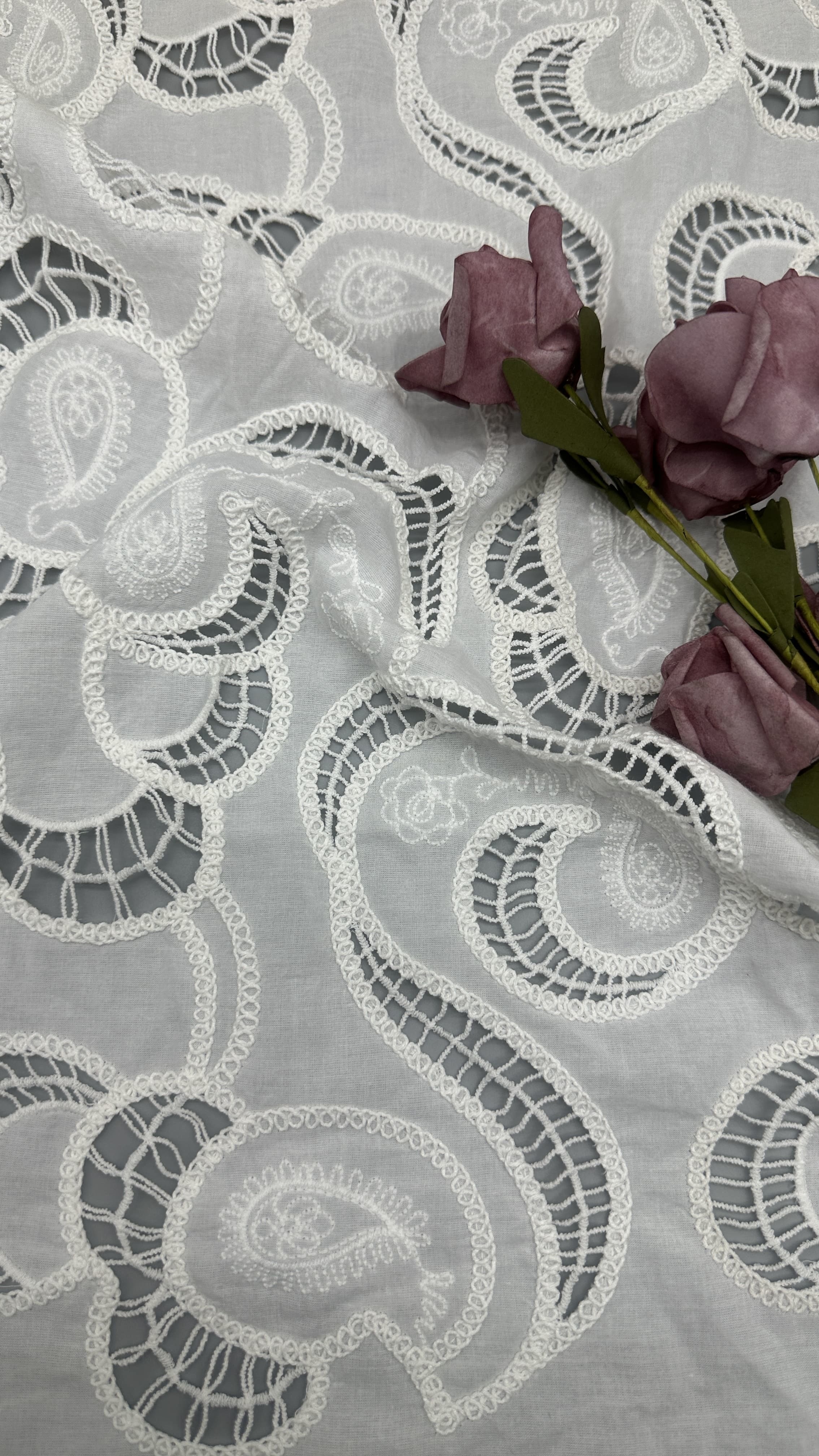A creative team keeps abreast of trends. The research facilities and production equipment are all advances. Most of our patterns are copyrighted and based on original artwork. Most important is our focus on breakthrough of the techniques that advance the art of lace marking . Additionally, Leafy Lace Carries the enough greige and finished colors to response to our customers’ s rapidly changing needs.