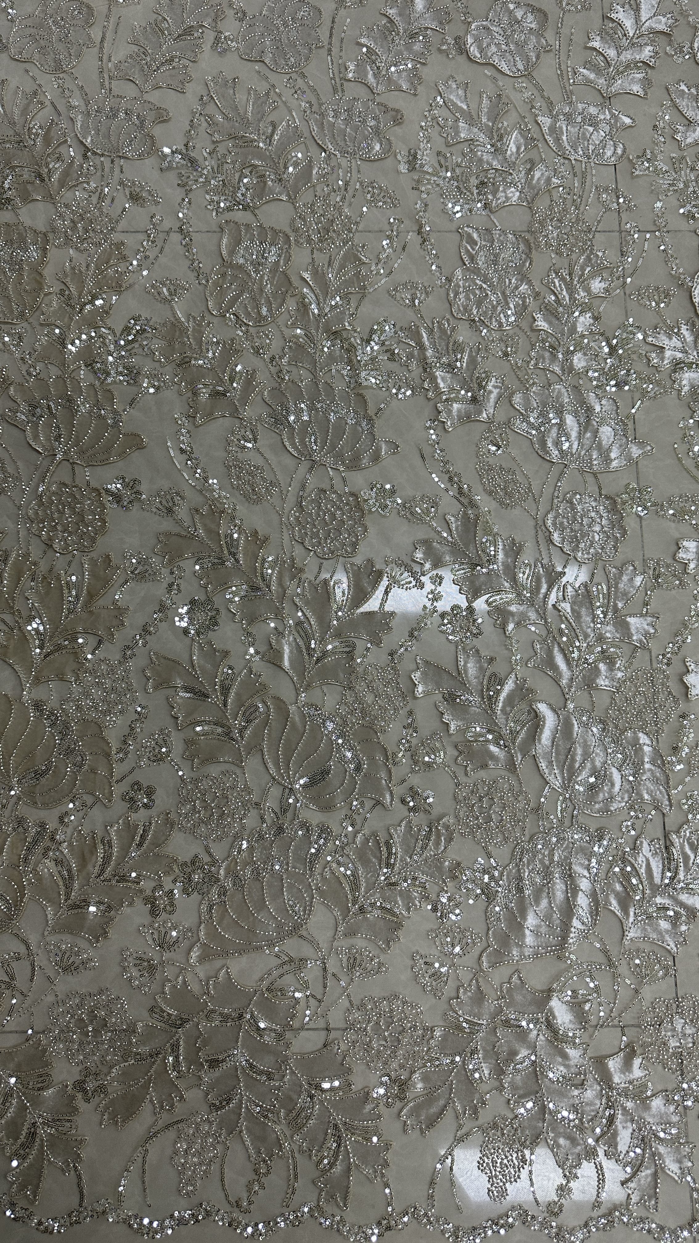 | Resaltar: | sequin lace bridal fabric,3D floral wedding gown fabric,soft embroidered lace for dresses |
